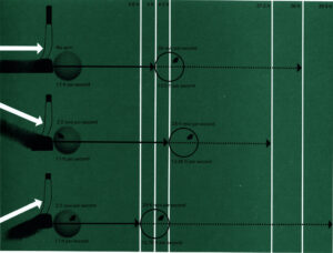 この実験によると例えば、平均的な速さのグリーン上において、パターヘッドが毎秒12フィート(3.6m/s)のヘッドスピードで、20フィートのパットを行う場合、ヘッドとボールのインパクトにおけるコンタクト時間は0.0006秒であり、コンタクト中のパターヘッドの移動量は0.07インチであることが判明した。