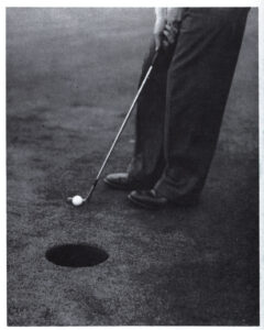 もし読者諸君がこの実験を自ら試して見たいと思うのであれば、午後の有益なアミューズメントを提供してくれることだろう。8.5インチというカップはそれほど大きなものに聞こえないかも知れないが、グリーン上でみれば大きな採掘場跡のように見える。5ヤードの近さになれば、パットをミスすることはほぼ不可能に感じ、周辺の傾斜などの些細なことを気にせずに、真っ直ぐにボールをカップに向けてたたき込むようになるだろう。しかしこれは間違った自信であり、傾斜の読み間違いを深刻なレベルで行えば、パットミスする可能性が充分にあることにすぐに気づくだろう。