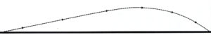 図24:4 ドライバーショットの非対称的な弾道。ショットが放たれた直後はスピンによってもたらされる揚力が大きいため、重力に対抗することでボールが直線的に飛んでいくように見えるが、後半に揚力が減少するにつれて通常の放物線軌道に近くなる。