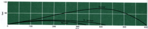 ディンプルのない完全に滑らかな表面のボールには、揚力が発生しないことは前述した。現実にはボール初速とスピンの関係で、滑らかな表面のボールにはマイナスの揚力が発生する可能性があるため、スピン量ゼロで打たれた通常のディンプルのボールよりもさらに飛ばない可能性がある。図24:6はスピンのない状態で打ち出されたボールが、理想的なスピンのかかったボールと比較してどのような弾道になるかを表したものだ。ここでは同時に、真空状態(重力はある)で打たれたボールの弾道も表示している。