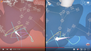AMGの動画では基本的にはあるテーマを決めて、それがプロとアマでどのように異なっているのかを比較して分析します。このプロは、聞いたところによると30人くらいのPGAのツアープロの平均値でつくったアバターで、アマの方はよくわかりませんがおそらく典型的なアマチュアの平均値アバターなのだと思います。